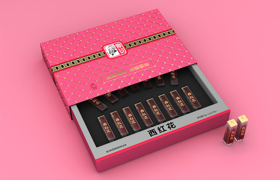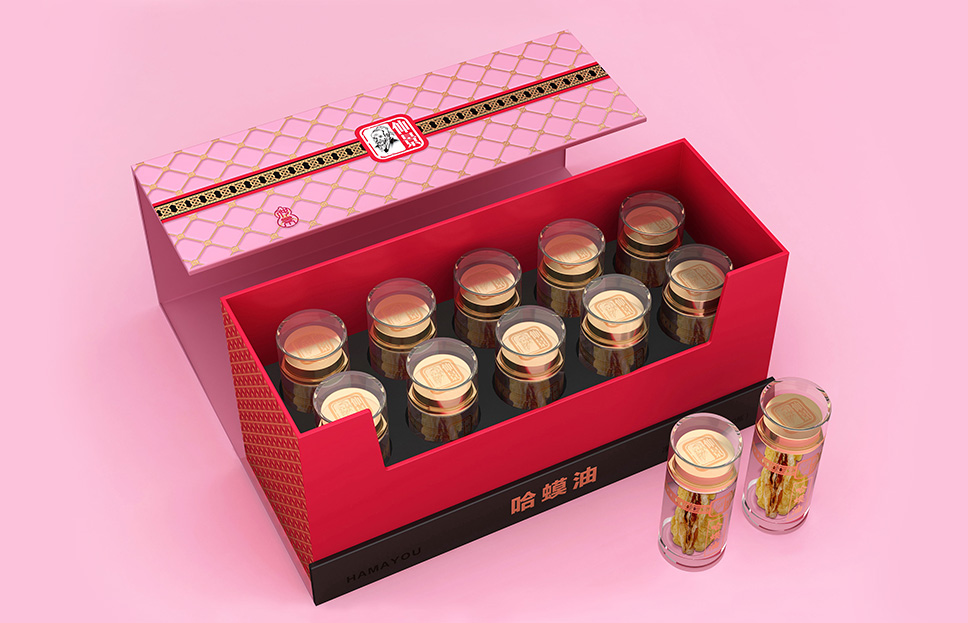 我們走訪了市面上眾多擁有同類產品的藥店,發現藥店中的這類禮盒都需要打開外盒陳列內部產品,這時,內部禮盒反而成為了視覺第一接觸點。而那些常見的或圓或方的普普通通的透明亞克力盒,不能體現產品的價值,因此需要重新對包裝造型進行開發設計。