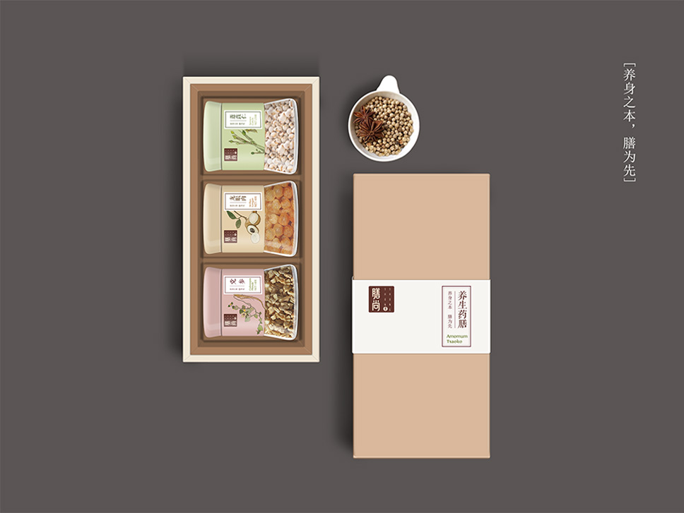 點睛之筆在于[養],結合[膳尚]這個名字,清晰明了的點出品牌定位[養生廚房]。最大程度的、最直觀的展現出品牌核心價值,與用戶建立情感溝通,增加用戶對于品牌的理解,提升品牌好感。