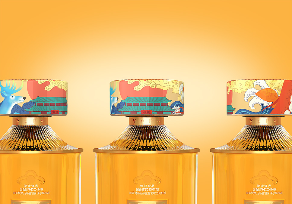 李華清產(chǎn)品戰(zhàn)略為御鋪養(yǎng)生酒開發(fā)了全新的養(yǎng)生酒瓶型,瓶型整體似“圓柱”造型,瓶口在皇家園林中的天壇祈年殿建筑中得到靈感,外部臺基屋檐圓形層層收縮上舉既造成強烈的向上動感,又使人感到端莊穩(wěn)重,整體瓶身為圓柱形,瓶口借鑒祈年殿的房檐,增加瓶身的層次感。以御鋪品牌藥鋪文化和皇家文化結(jié)合產(chǎn)品養(yǎng)生文化提煉融合,塑造御鋪專屬的識別性元素,建立品牌資產(chǎn)。