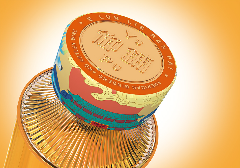 瓶口的圖案是由馬鹿茸、西洋參、中藥鋪、祥云、水紋等元素中提煉出來馬鹿茸,西洋參是中醫(yī)藥的珍品能夠體現(xiàn)產(chǎn)品的屬性;中藥鋪增加產(chǎn)品在醫(yī)藥中體現(xiàn)的價值感;祥云、水紋在傳統(tǒng)元素寓意祥瑞之云氣,表達了吉祥、喜慶、幸福的愿望以及對生命的美好向往,同樣把美好的寄寓應(yīng)用瓶口的包裝上。
